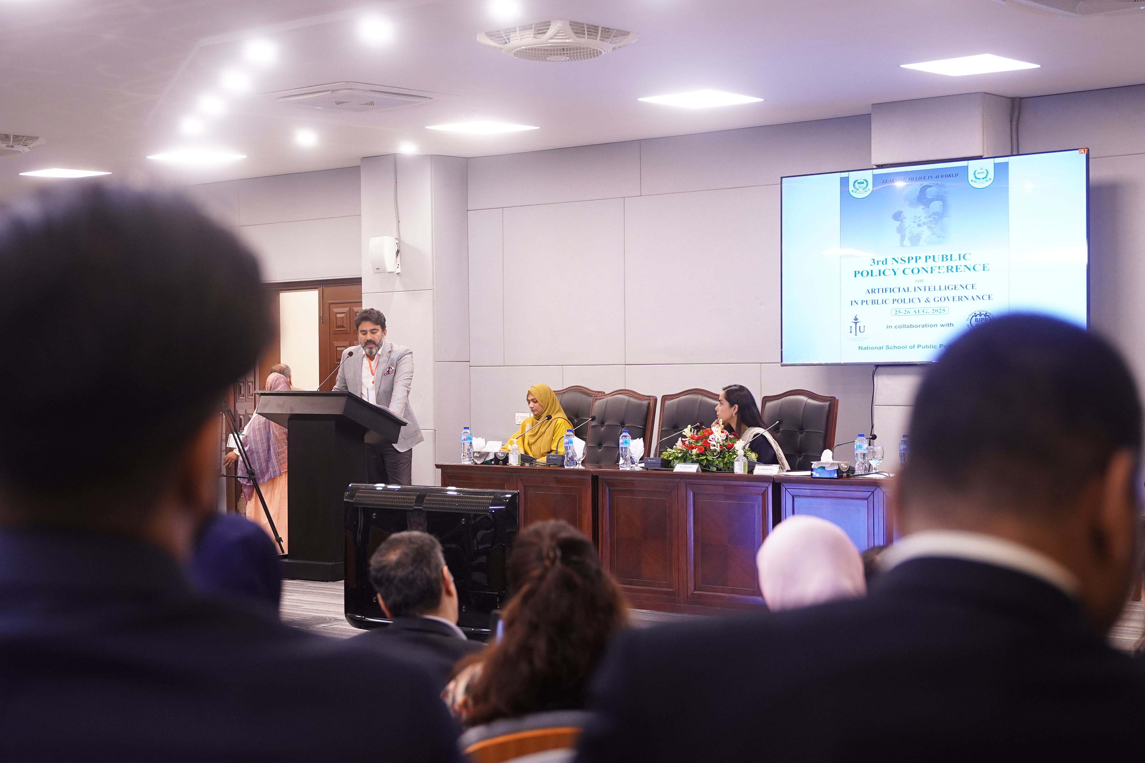 The National School of Public Policy (NSPP) held its 3rd annual Public Policy Conference on “Artificial Intelligence in Public Policy and Governance”, on 25-26th August, 2025 in Lahore. The two-day conference brought together leading scholars, policymakers, practitioners, and experts to explore the transformative role of Artificial Intelligence (AI) in governance, policy-making, and public administration. Dr. Naveed Elahi, Dean NIPP inaugurated the conference and emphasized the importance of AI in public policy while Dr. Muhammad Jamil Afaqi, Rector NSPP focused on the role of NSPP in equipping civil servants with AI. Mr. Ahsan Iqbal, Federal Minister for Planning & Development was the chief guest in the inaugural session and Sardar Saleem Haider Khan, Governor, Punjab was the chief guest for the closing ceremony. Whilst Dr. Musadik Malik, Federal Minister for Climate Change & Environmental Coordination was the guest of honour. The Information Technology University (ITU) and the Shahid Javed Burki Institute of Public Policy (BIPP) collaborated with NSPP for this conference.
