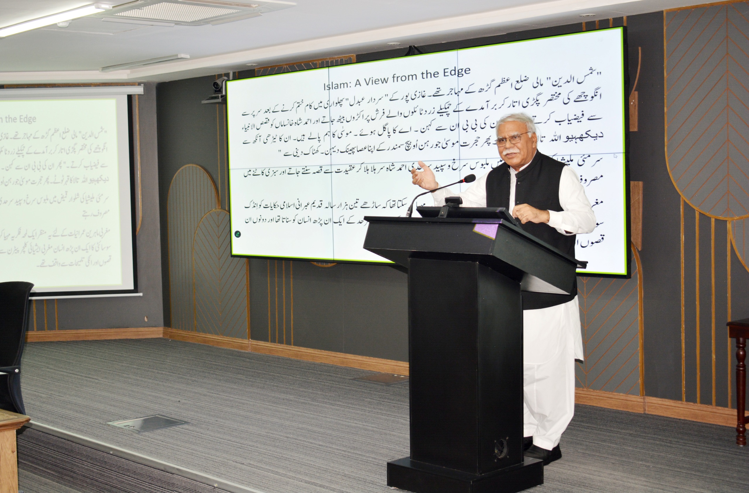 In a commemorative talk marking  Prophet’s (PBUH)’s birth anniversary, Dr. Afaqi, Dean PASC, shared his reflections on ‘نعتِ رسول صلی اللہ علیہ وسلم کا عہد بہ عہد جائزہ’. In his address, he highlighted the rich and multidimensional evolution of Naat writing, exploring its themes, craft, meter, and mood, and showing how poets across cultures and ages have drawn inspiration from the Prophet’s (PBUH) blessed personality in multiple ways, reflecting the perspectives and moods of that particular culture and age.
