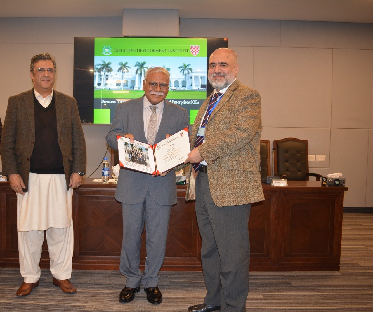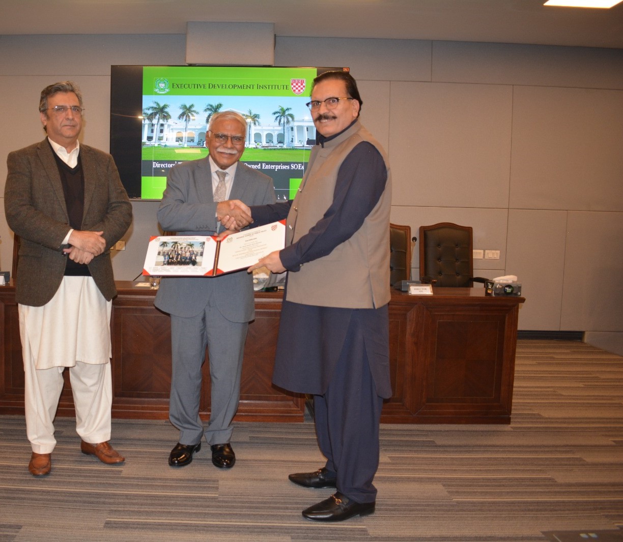 The Executive Development Institute (EDI) of the National School of Public Policy (NSPP), Lahore, conducted the 3rdDirectors’ Training Program (DTP) for State-Owned Enterprises (SOEs) from December 17 to 19, 2025. This program, approved by the Securities & Exchange Commission of Pakistan (SECP), was designed to equip SOE directors with essential competencies in corporate governance and financial stewardship, in line with the State-Owned Enterprises (Governance and Operations) Act, 2023. A total of 27 participants from various federal and provincial departments, along with private sector executives, attended the program. Dr. Naveed Elahi, Dean EDI, formally introduced the program and outlined the comprehensive curriculum aimed at strengthening leadership and governance capabilities. The sessions covered key areas such as corporate governance, risk management, strategic oversight through interactive and engaging learning methodologies’. Muhammad Jamil Afaqi, Rector NSPP, welcomed the participants and underscored the importance of the program in enhancing corporate governance standards in Pakistan. Mr. Kamran Ahmad, Director EDI, highlighted the rigorous selection of eminent resource persons and shared the positive outcomes of previous training programs. Distinguished guest speakers from SECP, academia and various industries delivered insightful presentations on a wide range of SOE governance-related topics. The program witnessed active participation and robust discussions, with participants expressing appreciation for the high quality of training. The program concluded with a certificate distribution ceremony hosted by the Rector NSPP and the Dean EDI.