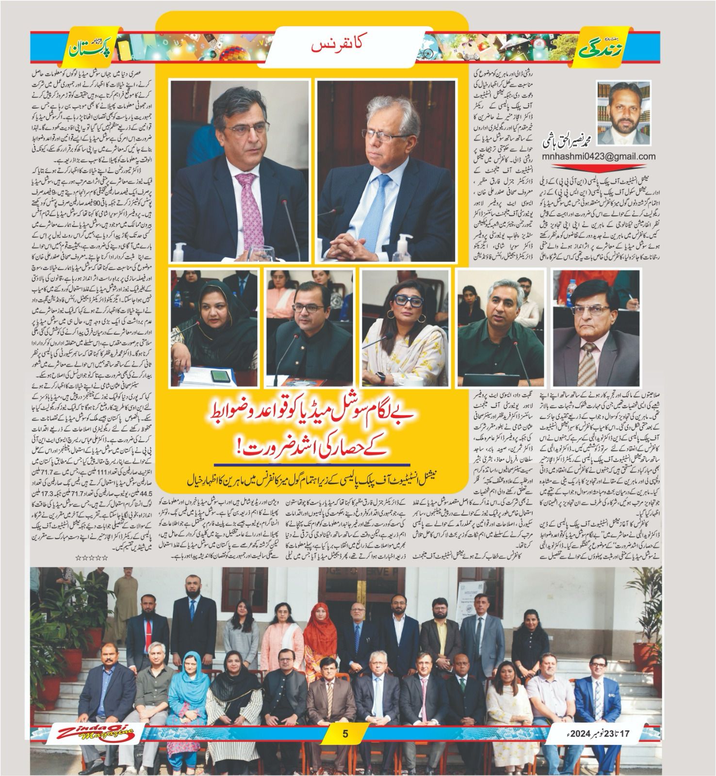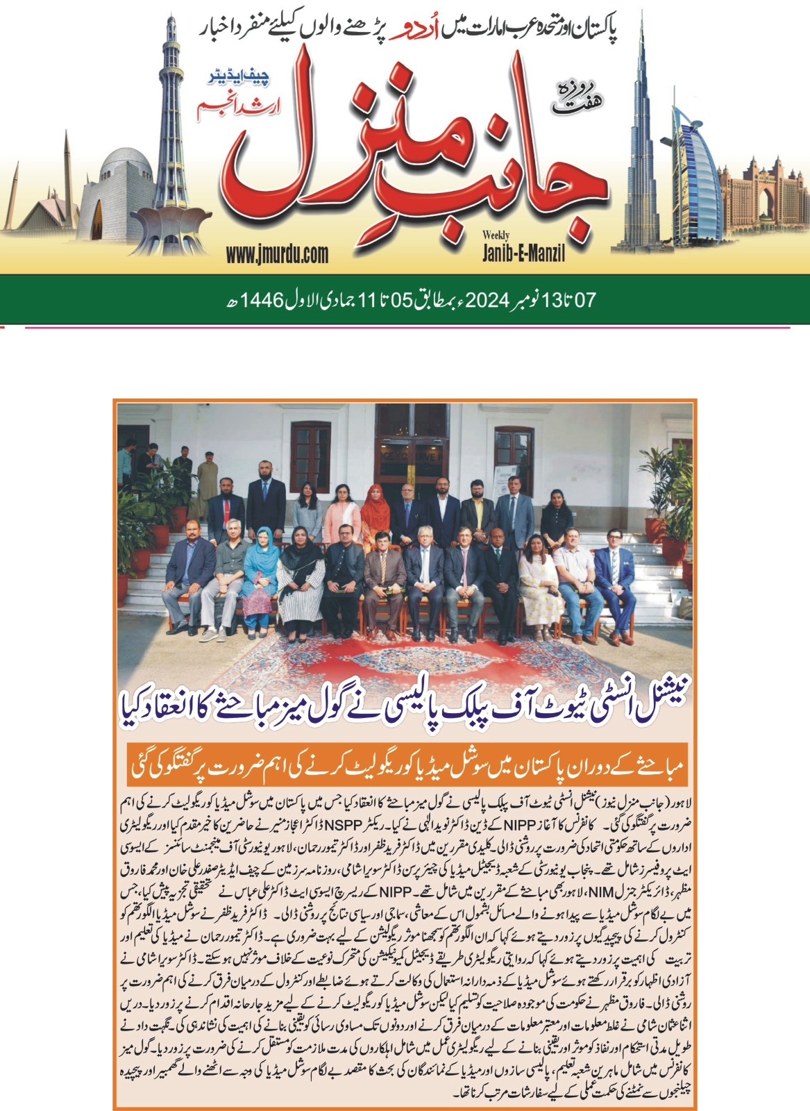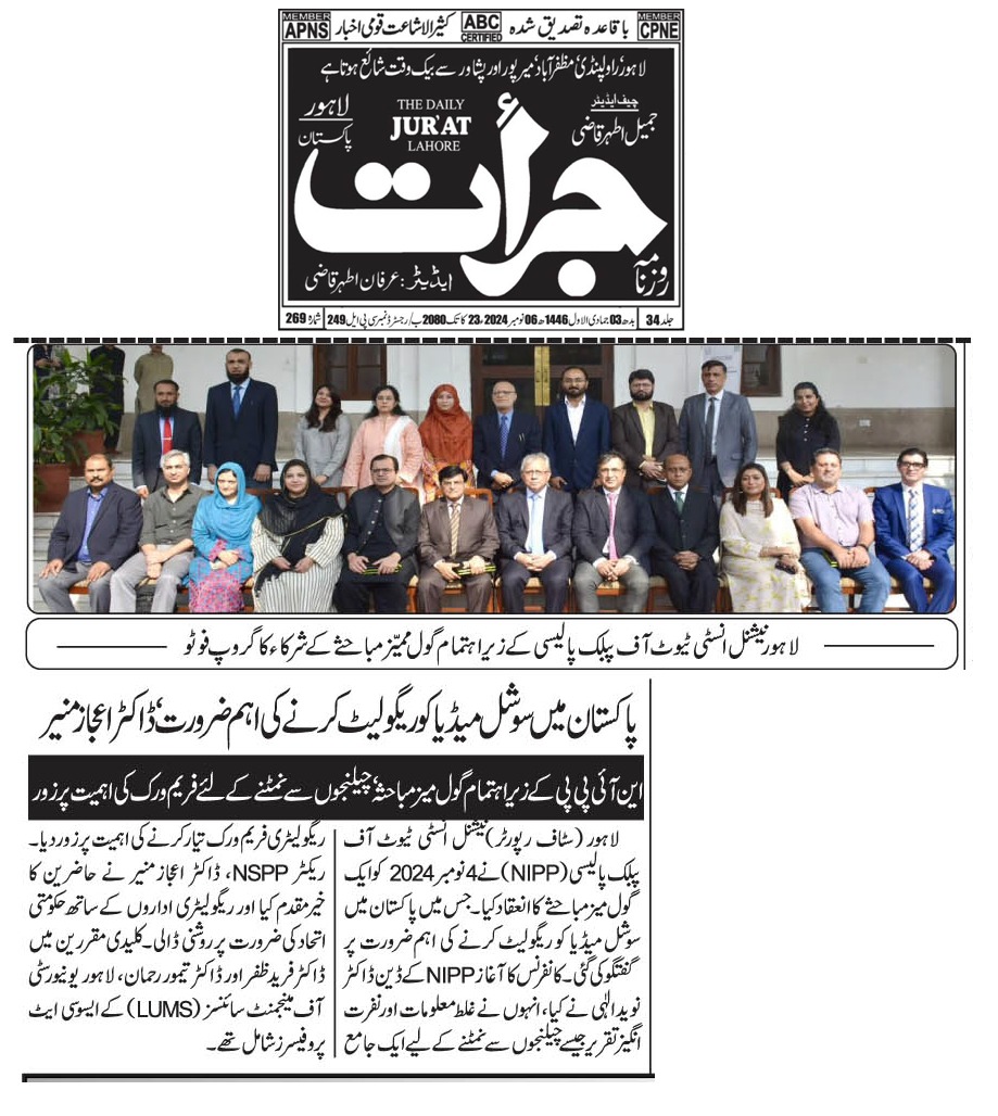 The National Institute of Public Policy (NIPP) hosted a roundtable discussion on November 4, 2024, addressing the pressing need to regulate social media in Pakistan. The conference was initiated by Dr. Naveed Elahi, Dean of NIPP, who underscored the importance of developing a comprehensive regulatory framework to tackle challenges such as misinformation and hate speech.